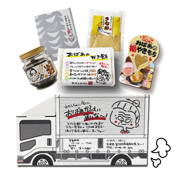 おばあ商品大集合!冬限定のかきもちに、大人気のおばあの栃やきもち。やきもちにつけても